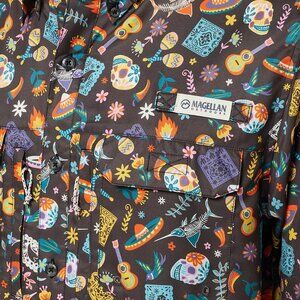 NEW Magellan Outdoors Men's Dia De Los Muertos Print Short Sleeve Fishing Shirt