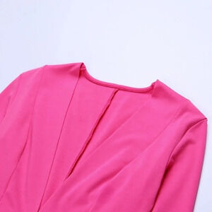 NEW! Magenta Plunging V-Neck Ruched Long Sleeve Mini Dress