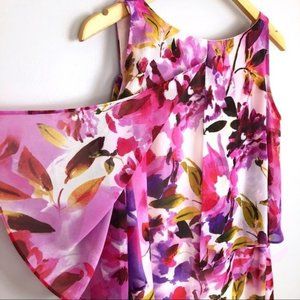Maggy London Cold Shoulder Flutter Sleeve Sheath Dress. Beautiful floral pattern and flattering style. Women’s size 8.