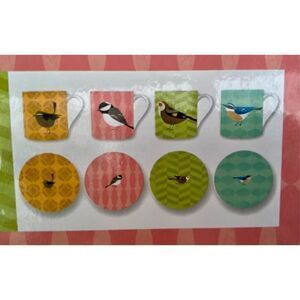 NEW IN BOX Magpie Chirpy Whimsical Birds Set Of 4 Espresso Cups And 4 Matching Saucers.