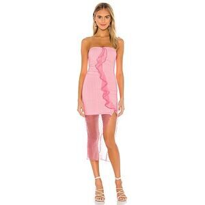 NEW Majorelle Brady Strapless Pink Dot Strapless Midi Dress Size Large