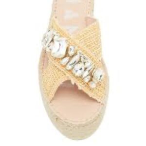 NEW Manebi Crystal Rhinestone Platform Espadrilles Embellished Raffia Sandals Flatforms Size 40