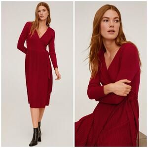 NEW without tag, Mango Deep Red Sweater Wrap Midi Dress. Size 4. Long sleeve. Pleated Skirt. True wrap.