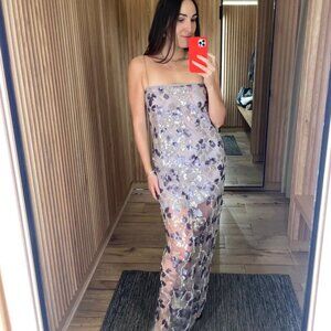 NEW Mango + Jen Ceballos Collab Lavender Floral Lace Sequin Embroidered Dress
