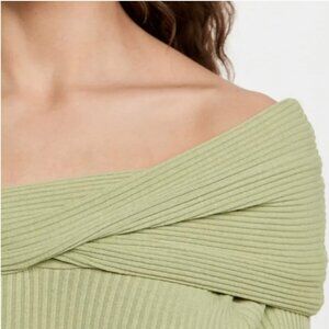 NEW Mara Hoffman Emery Dress S Light Green Ribbed Knit Off the Shoulder Linen