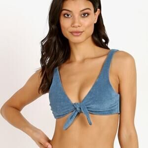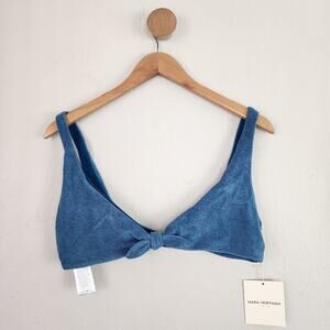 NEW Mara Hoffman Rio Knot Front Scoop Neck Bikini Swim Top in Slate Blue
