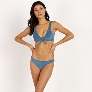The Rio bikini top features a scoop neck with a knot front detail in a cool textured terry fabric.