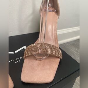 NEW Marc Fisher Angelo Ankle Strap Heels with Rhinestones Suede Size 7.5