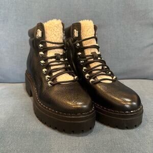 NEW Marc Fisher LTD Black Leather Nairy Hiking Boots, Sz 7M (JJ)