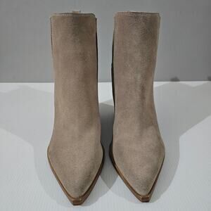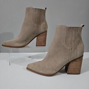 NEW Marc Fisher Oshay Ankle Bootie Women 10 Tan Suede Pull On Chelsea Block Heel