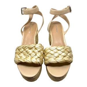 NEW Marc Fisher Steel Sz 9.5 Natural Raffia Platform Chunky Sandals Beachy NWOB