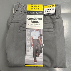 NEW Marc New York Men's 32X34 Gray Commuter Pants Four-Way Stretch Slim-Fit
