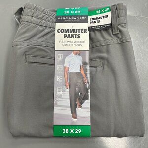 NEW Marc New York Men's 38 X 29 Four-Way Stretch Slim-Fit Commuter Pants Gray