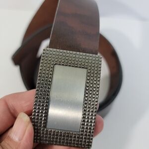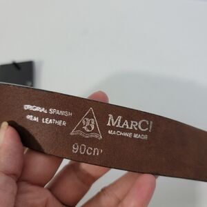 NEW Marc Original Spanish Leather Belt 90cm Brown-Silver Textured Buckle Unisex