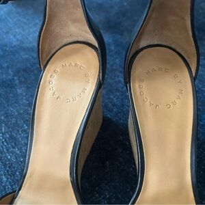 NEW Marc by Marc Jacobs Black Leather Cork Wedges