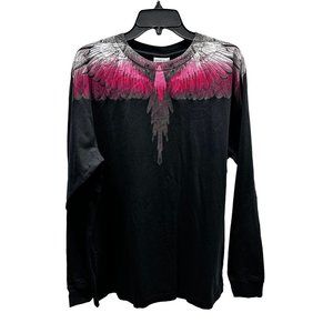NEW Marcelo Burlon Wings Black/Fuchsia Long Sleeve Tee Small