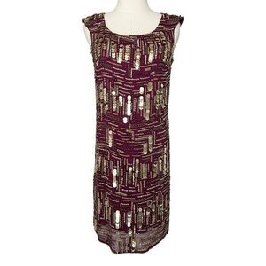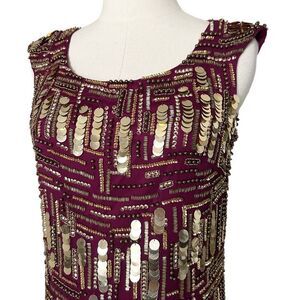 NEW Marchesa Notte Beaded Sequin Silk Sheath Cocktail Dress Wine Size 6 party