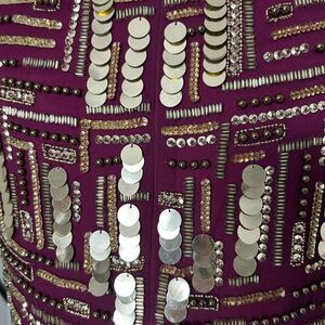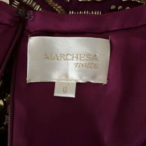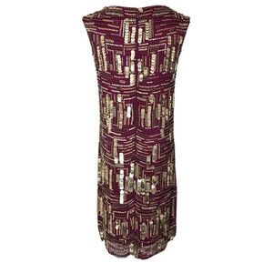 Marchesa Notte Beaded Sequin Silk Sheath Cocktail Dress in Wine and Gold. Brand new without tags. Size 6.