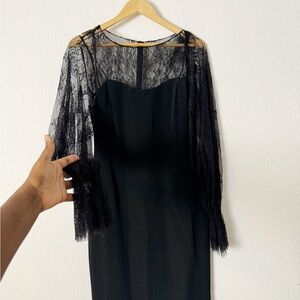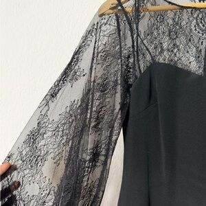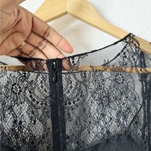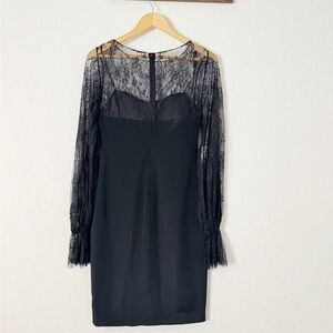 Marchesa Notte Black Silk Sheer Lace Yoke Detail Shift Dress