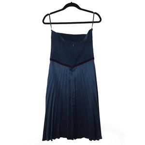 NEW Maria Bianca Nero Accordion Pleat Strapless Silk Dress Floral Dark Teal