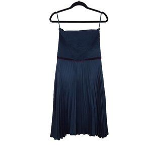 NEW Maria Bianca Nero Accordion Pleat Strapless Dress Floral Dark Teal