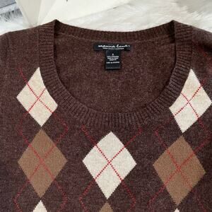 NEW Marina Luna Cashmere Argyle Classic Preppy Timeless Layering Sweater S NWOT