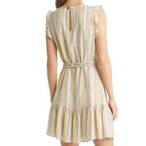 This lyocell-and-linen minidress has it all: cool pastel stripes, a flouncy hem, flutter sleeves and a braided tie for a sweet warm-weather look.