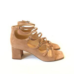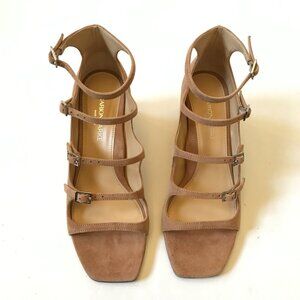 NEW Marion Parke Francine Sandals Heels Womens 37 7 Caramel Tan Suede Buckle NEW