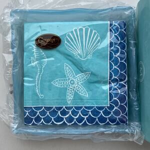 NEW Mariposa Cocktail Napkins Weight Box SET Shell Beach Resort Blue Scallop