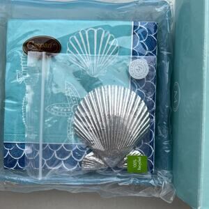 NEW Mariposa Napkins Weight Box Shell Beach Resort Summer Blue Scalloped
