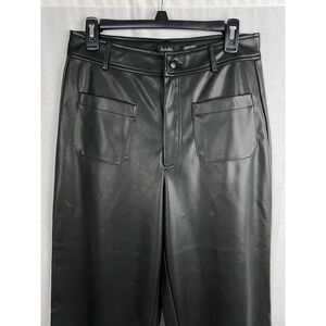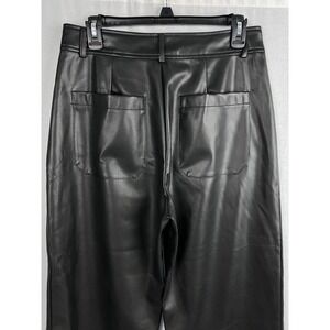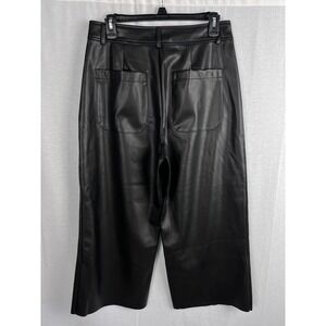 NEW Mark Alan Black Faux Vegan Leather Wide Leg Crop Modern Mob Wife Work Pants