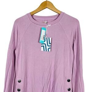 NEW! Market & Spruce Scoop Neck Jersey Top Button Side Mauve Pink Long Sleeve S