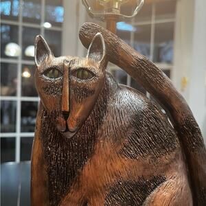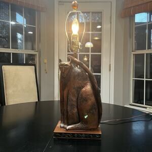 NEW Marsha McCarthy Bronze Cat Feline Sculpture Statue Bedside Table Lamp 22”