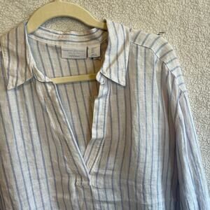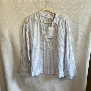 NEW Martha Stewart 100% Linen Stripedblue white Top Sz L Nautical Stealth Wealth