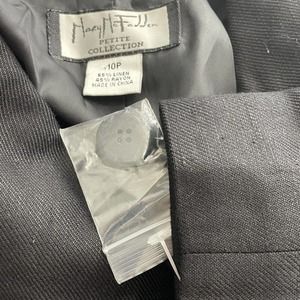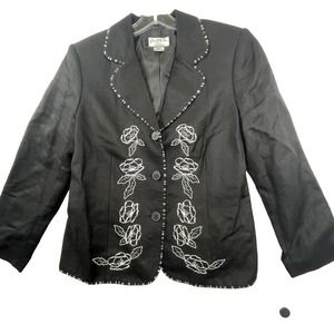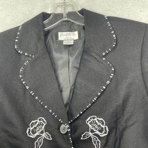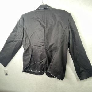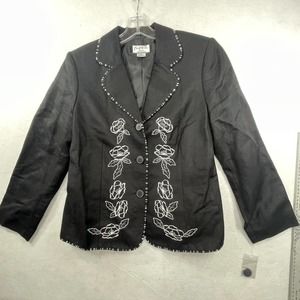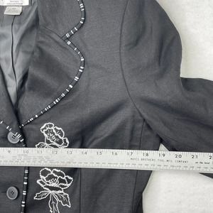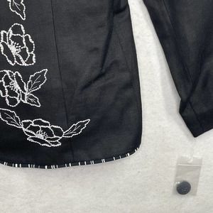 NEW Mary McFadden Black Linen Blend Womens Size 10 P Floral Embroidered Blazer