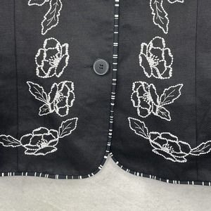 Mary McFadden black and white floral embroidered linen and rayon blend blazer