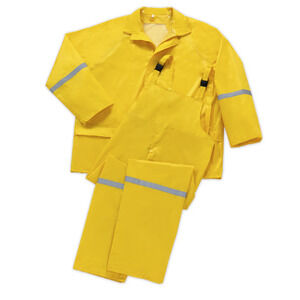 NEW Master Gear 3 PIECE RAINSUIT XL Yellow Jacket Bib Hood Reflective Tape 3PC