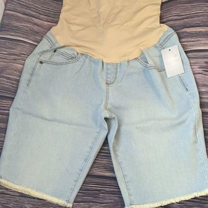 NEW Maternity a:glow Cut off Hem Full Belly Panel Denim Bermuda Shorts Size 8