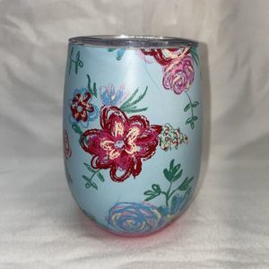 NEW Matilda Jane Be Merry Wine Tumbler Blue w/Pink Floral with Lid