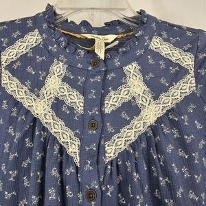 NEW Matilda Jane JEMMA Peasant Top Girls 10 Blue Boho Floral Crochet Blouse