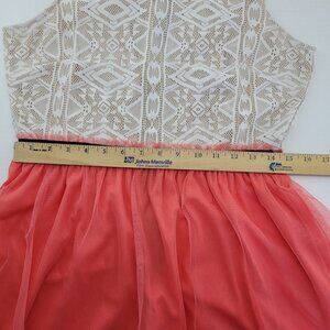 Maurices Lace Bodice Dress with Lined Citrus Color Tulle skirt with black Waist and Zipper accents.