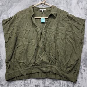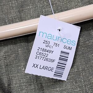 NEW Maurices Top Womens XXL Green Linen Blend Collared Wrap Pullover Boho Casual