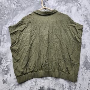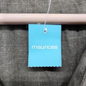 NEW Maurices Top Womens XXL Green Linen Blend Collared Wrap Pullover Boho Casual Lagenlook Minimalist Elastic Waist Cap Sleeves Safety Hook