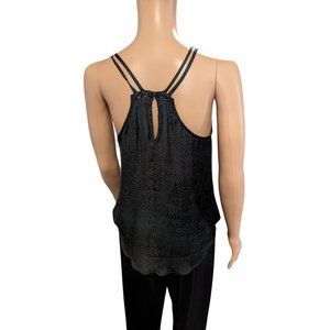 NEW Maurice’s Women SZ S Edgy Bubble Hem Black Gray Dots Wrap Tank Top Keyhole Back