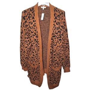 Maurices, Women XXL, Leopard Print Brown/ Black -- Open Front No Closure, Pockets, Tunic Length, Eyelash Knit Texture, Soft, Comfort Cardigan Sweater