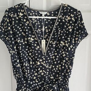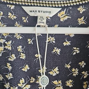 NEW Max Studio Black and Cream Patterned Short Sleeve Belted Midi Dress XL