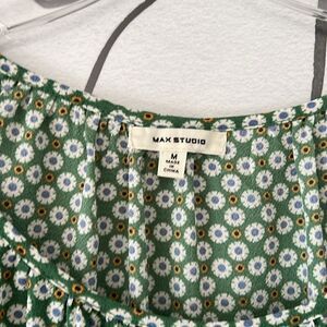 NEW Max Studio Dress Tunic Women Floral Boho Ruffle Long Balloon Sleeve Medium