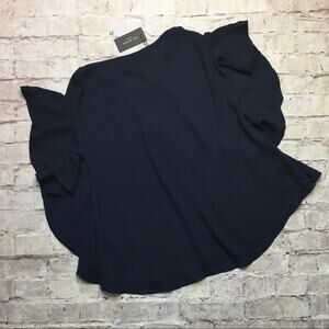 Size XS Max Studio Woman’s Flutter Sleeve Keyhole Blouse in Navy Blue. New with Tags.