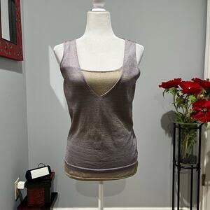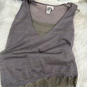 NEW Max Studio Rayon Two Tone Contrast Striped Semi Sheer Knit Sleeveless Top M