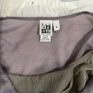 New without tags Gorgeous Lavender and Sage Green Two-Tone Contrast Striped Semi Sheer Rayon Double Layered Knit Sleeveless Top by Max Studio. Sage Green Camisole with Scoop Neck and Spaghetti Straps attached at interior shoulders to Lavender and Sage Striped V-Neck Plunge Sheer Sleeveless Shell. Inner Cami is longer than Outer Shell. Women’s Size Medium.